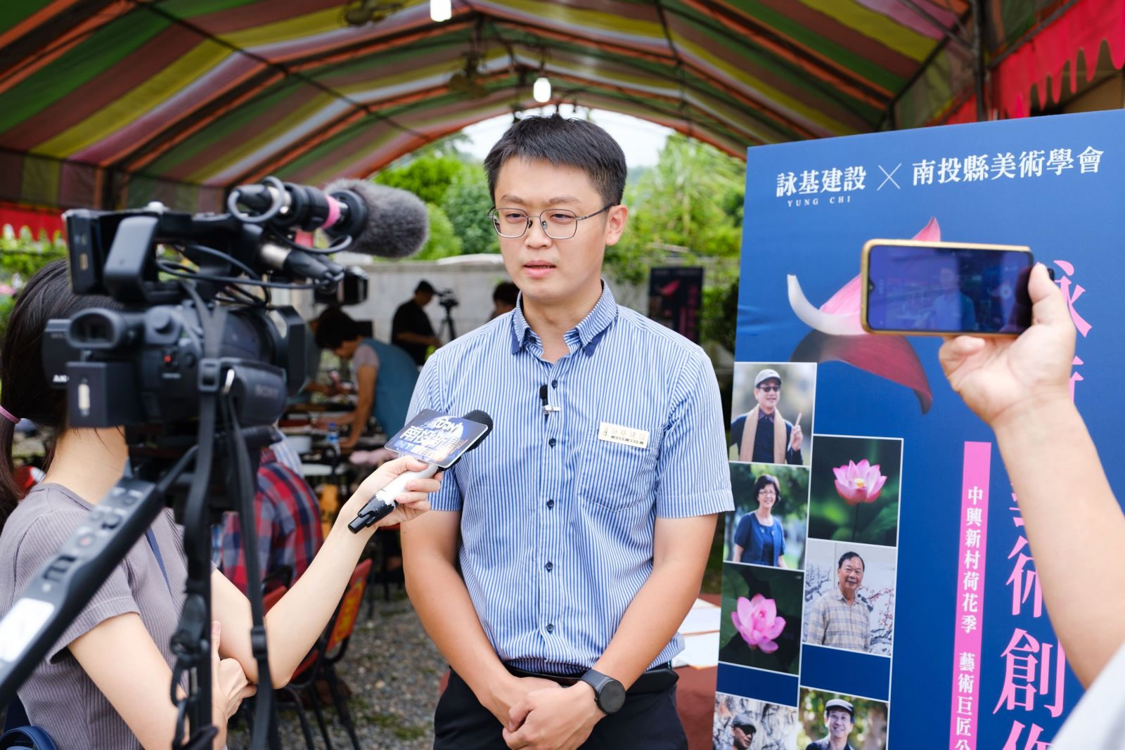 在荷花盛開最美之時 語荷共舞! 由詠基建設與南投縣美術學會共同策劃, 邀請藝術大師們在中興新村荷花池畔創作, 中興新村蘊藏著豐厚的歷史與人文價值, 獨特的花園城市規劃與豐沛的自然環境, 新舊交織的文化共榮,生活處處是風景! 24位大師 沈輝勝、姚淑芬、陳維安、廖述麟、林富源、洪晧倫、林進達、游守中、程錫牙、王輝煌、洪春成、柯適中、賴威嚴、曾仁甫、陳明弘、張芝、蕭焜隆、嚴玟鑠、王育真、劉秀貞、莊鵑萍、許民盛、唐龍才、陳光明